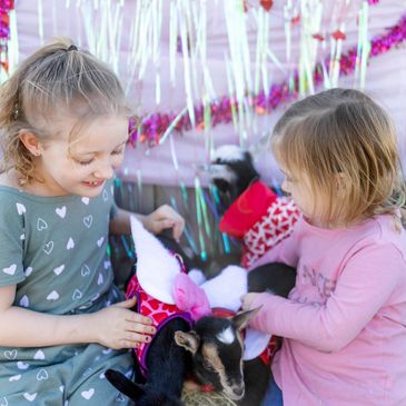 The basic package includes any combination of goats, piglets, rabbits, ducks and chickens you would like. We can add cows, donkeys, and soon alpacas to your bookings. Message us for availability and to customize a package just for you today!!